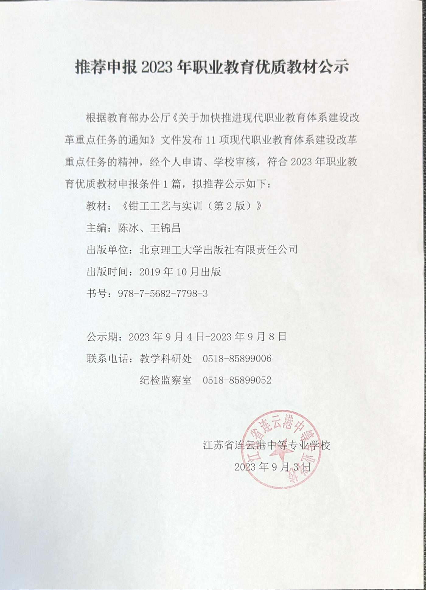 推薦申報2023年職業(yè)教育優(yōu)質(zhì)教材公示