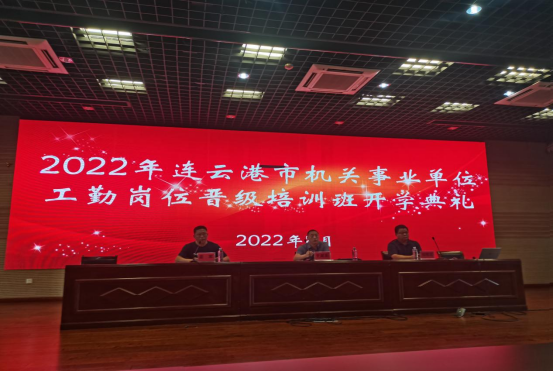 2022年8月17日上午8:30點,連云港市機關事業(yè)單位工勤崗位人員晉級培訓班開班典禮,在我校報告廳舉行。開學典禮三項主題。