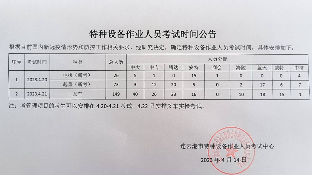 2023年特種設(shè)備作業(yè)人員考試公告(九)