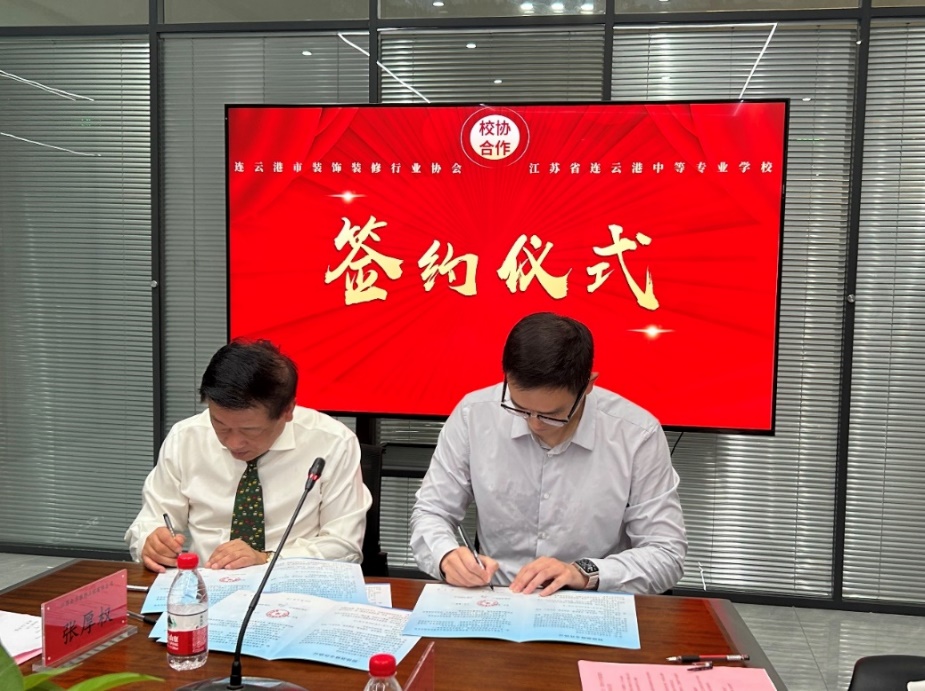 為進(jìn)一步推進(jìn)職業(yè)教育產(chǎn)教融合校企合作,培養(yǎng)適應(yīng)行業(yè)發(fā)展需求的建筑行業(yè)人才,10月19日上午,連云港中等專(zhuān)業(yè)學(xué)校建筑工程系一行14人,在系主任尹浩的帶領(lǐng)下,來(lái)到江蘇云飾界軟裝工程設(shè)計(jì)有限公司,與連云港市裝飾裝修行業(yè)協(xié)會(huì)開(kāi)展了“校協(xié)合作”簽約活動(dòng)。建筑工程系主任尹浩、黨支部書(shū)記張志紅、黨支部副書(shū)記王鐵軍、連云港市裝飾裝修行業(yè)協(xié)會(huì)會(huì)長(zhǎng)毛桂余、中共連云港市裝飾裝修行業(yè)支部委員會(huì)書(shū)記侯居功等出席簽約儀式。會(huì)議由連云港市裝飾裝修行業(yè)協(xié)會(huì)秘書(shū)長(zhǎng)楊健主持。