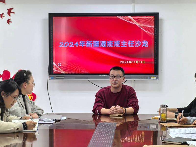 2024年11月11日,學(xué)生工作處在1-817會(huì)議室舉行了新疆班混班班主任沙龍。學(xué)生工工處副處長(zhǎng)劉濤、民族科科長(zhǎng)李首翰、新疆內(nèi)值班魏敏老師、西日娜依老師、巴依里克老師以及全體混班班主任參加本次活動(dòng)。本次活動(dòng)還特別邀請(qǐng)了黃慧老師、李蘭老師分享混班管理的經(jīng)驗(yàn)。