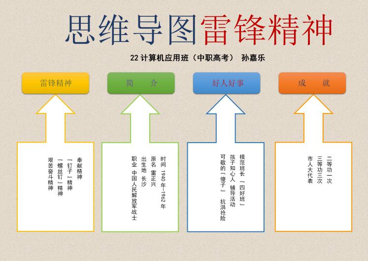 結(jié)合計(jì)算機(jī)專業(yè)特長,班級(jí)開展了設(shè)計(jì)學(xué)雷鋒電子海報(bào)和思維導(dǎo)圖的活動(dòng)。同學(xué)們積極參與,捕捉設(shè)計(jì)靈感,生動(dòng)豐富地展現(xiàn)了雷鋒精神,創(chuàng)作出了許多富有感染力的作品。